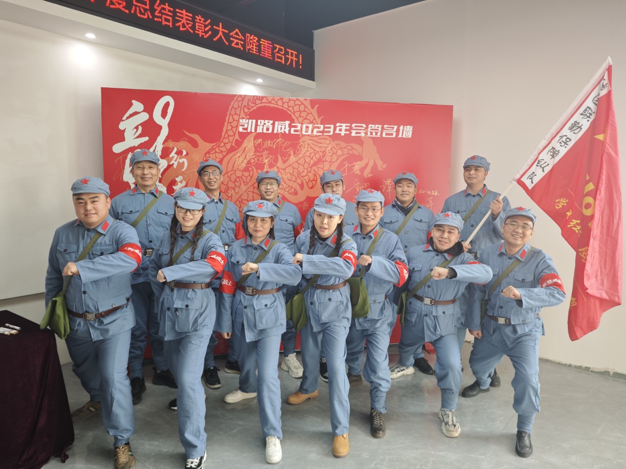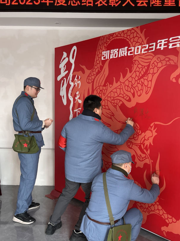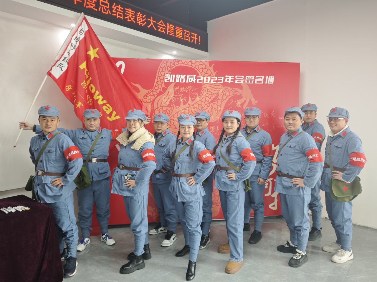 大会开始,和记官网“战士们”身穿蓝色红军服,头戴闪闪红星帽,精神勃发、斗志昂扬!大家纷纷签名合影留念。